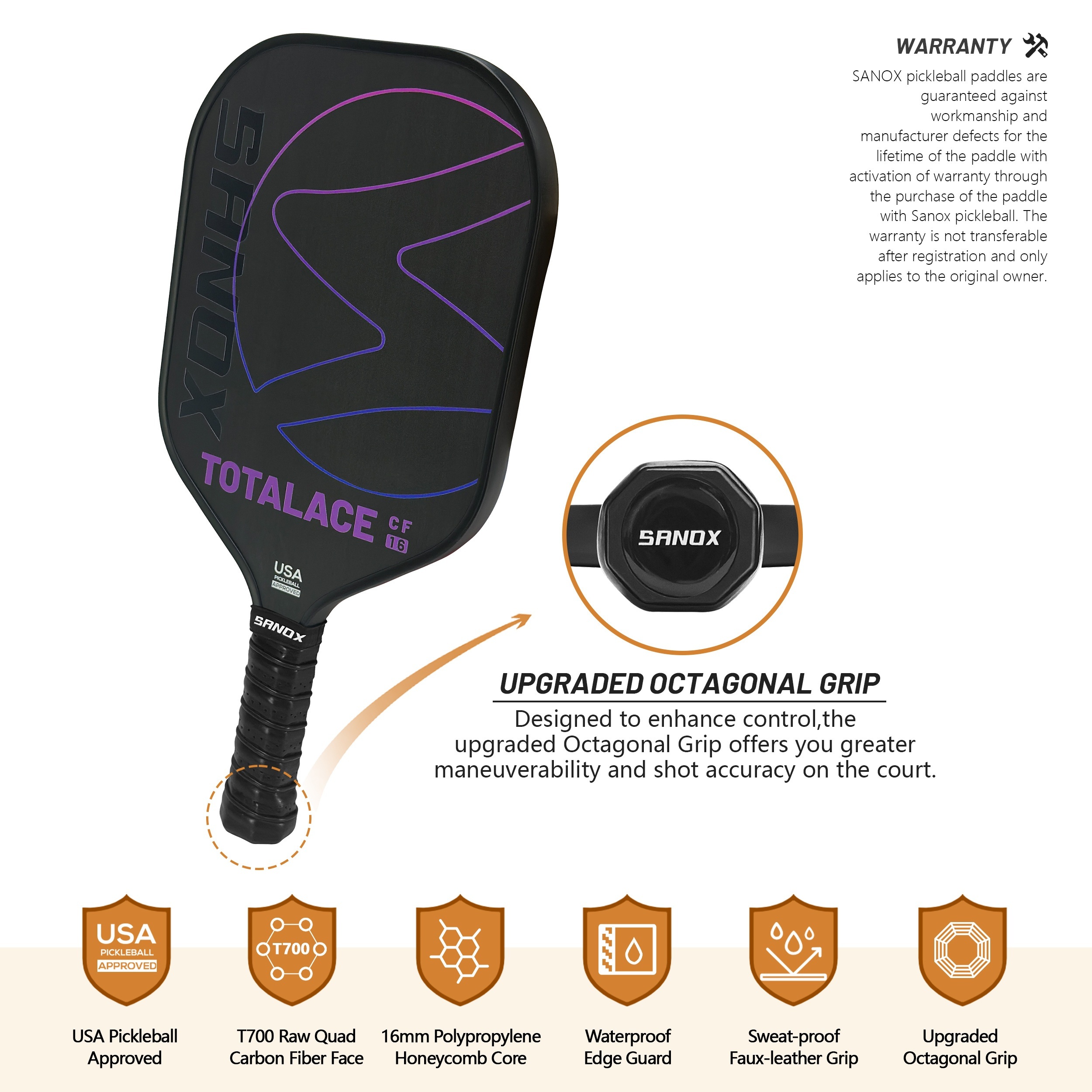 Premium T700 Carbon Fiber Pickleball Paddle – 16mm, USA Approved, Textured Surface for Enhanced Spin & Control, Ideal for Advanced Training & Competitive Play – Purple