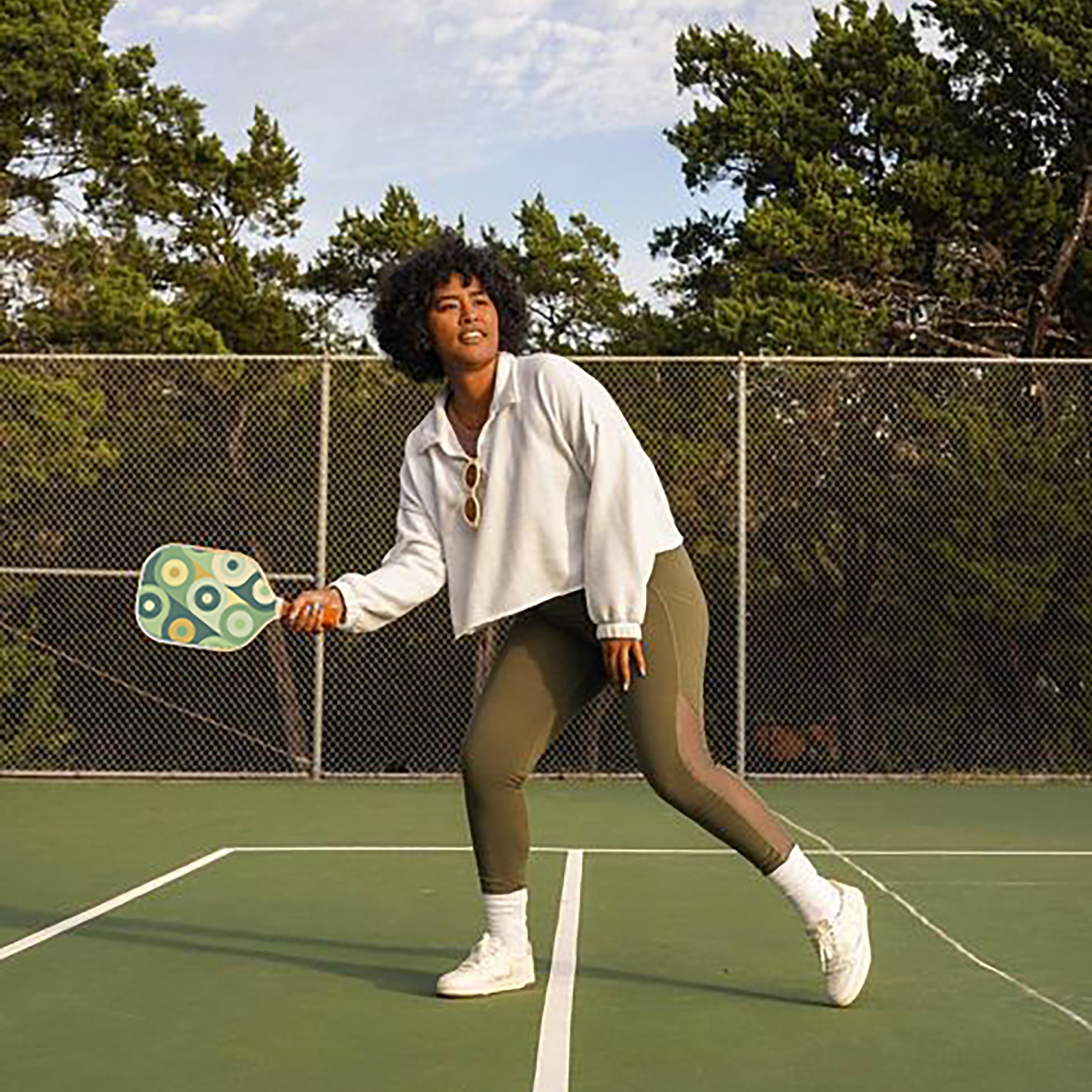 1PC Charleston Pattern Unisex Pickleball Paddle – Cold-Pressed Fiberglass Surface, PP Honeycomb Core, Waterproof Edge Guard, Sweat-Resistant Grip, USA Pickleball Approved – Perfect for Thanksgiving and Independence Day Celebrations