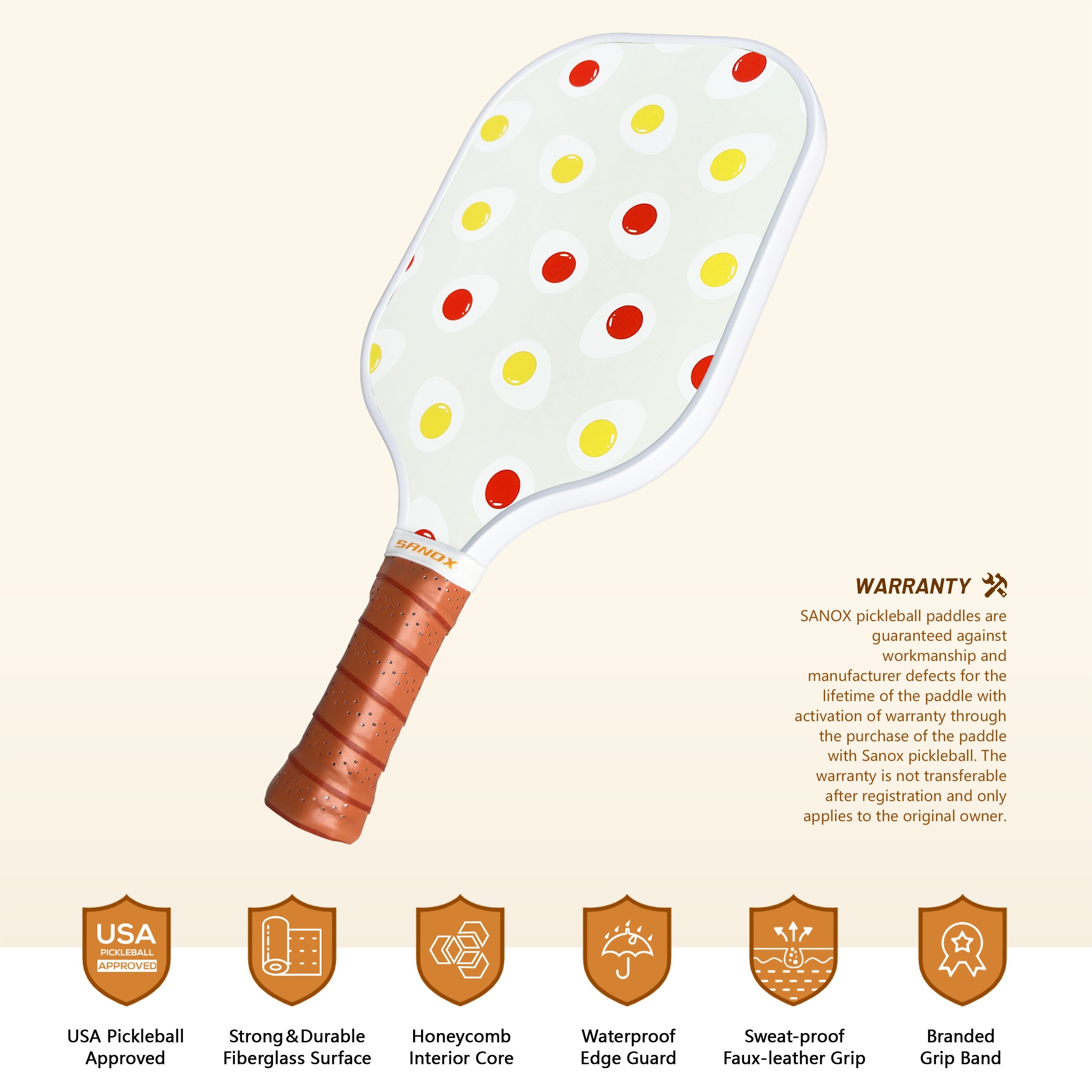 1pc Sunny Egg Design Unisex-Adult Pickleball Paddle - Cold Pressed Fiberglass Surface, PP Honeycomb Core, Waterproof Edge Guard, Sweat-Proof Grip, USA Approved for Thanksgiving & Independence Day