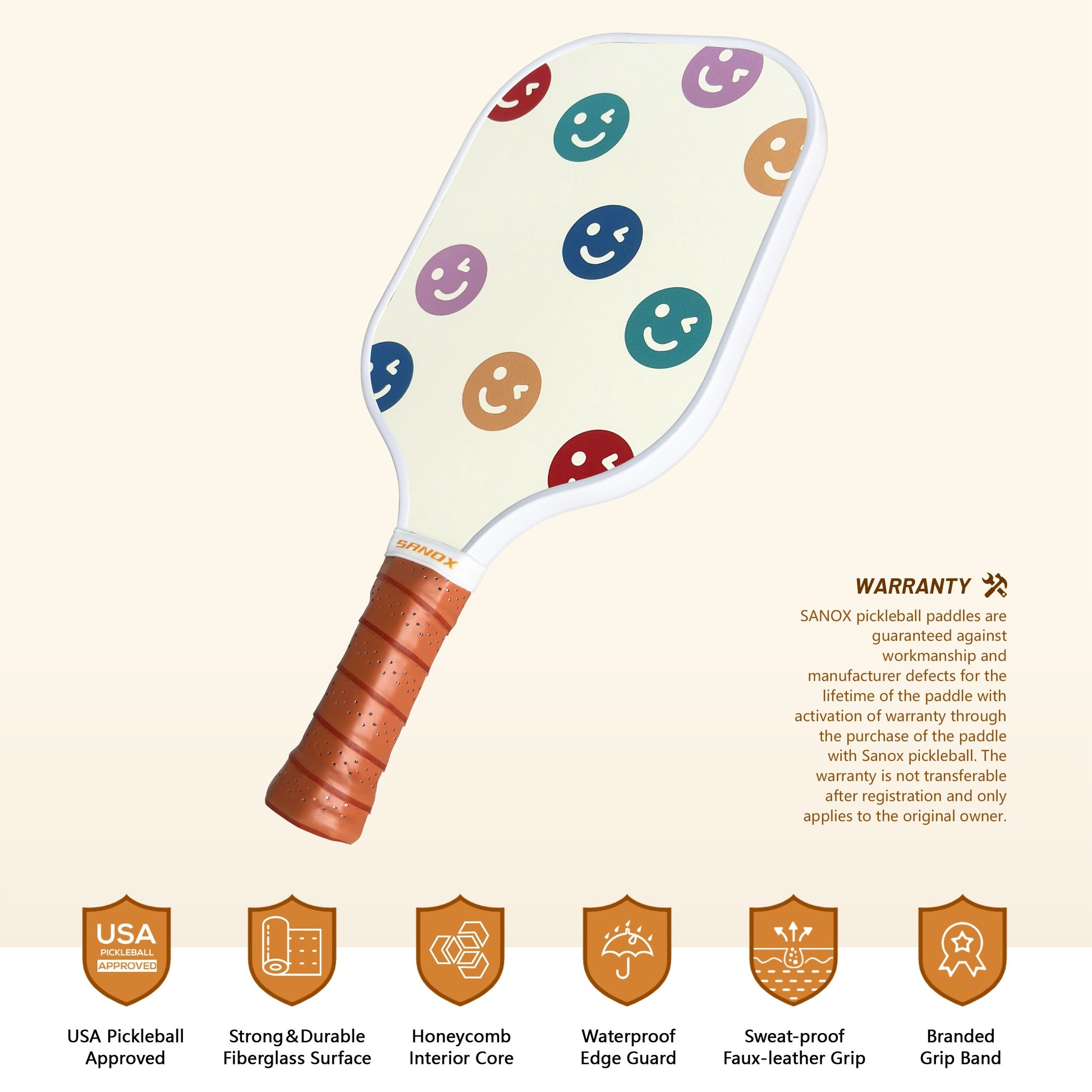 1pc Unisex Fiberglass Pickleball Paddle - Cold Pressed Construction, PP Honeycomb Core, Waterproof Edge Guard, Sweat-Proof Grip, USA Approved for Thanksgiving & Independence Day - Optimist Brand