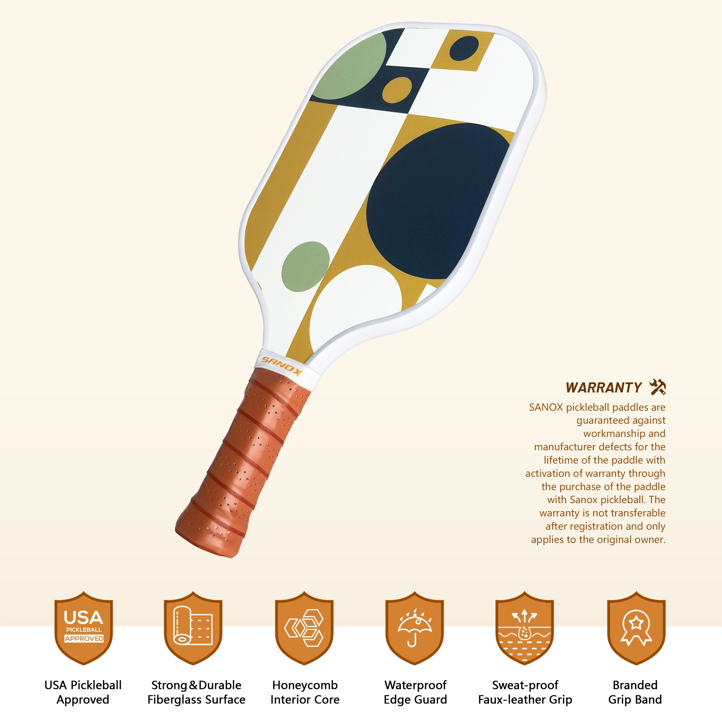 Unisex-Adults Pickleball Paddle, Fiberglass Recreational Racket, Cold Pressed, PP Honeycomb Core, for Beginners, Ideal for Valentine's, Independence, Thanksgiving, Christmas - Sonny
